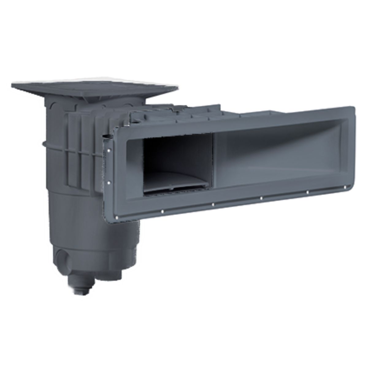 Weltico skimmer A600 Design, hoogwaterlijn, brede zuigmond, antraciet, voor prefab/liner zwembaden, opening 598 x 117 mm, sierflens 636 x 160 mm, 3 aansluitmogelijkheden: Ø 50 mm, F x 1½” M, F x 2″ M