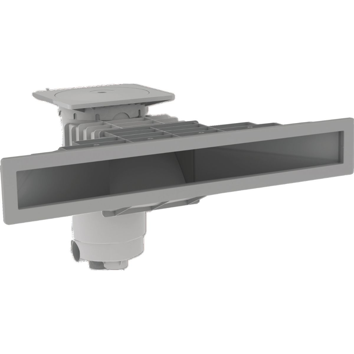 Weltico skimmer A800 Design, hoogwaterlijn, brede zuigmond, grijs, voor prefab/liner en polyester zwembaden A800 Design, opening 752 x 73 mm, sierflens 806 x 126 mm, 3 aansluitmogelijkheden: Ø 50 mm, F x 1½” M, F x 2″ M
