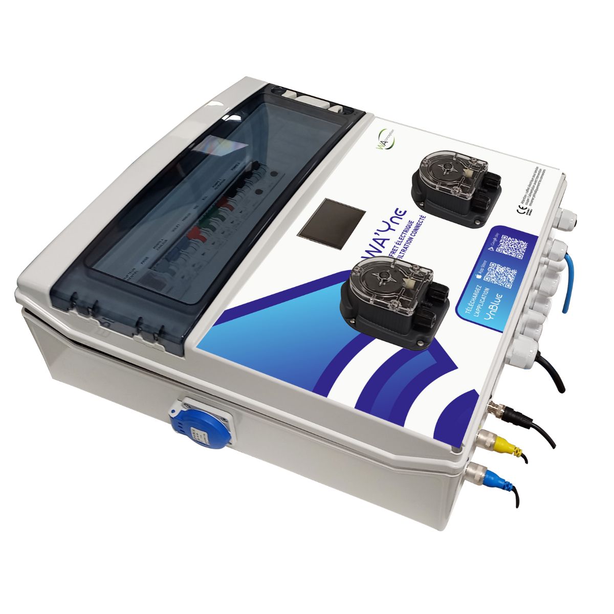De Wa’Yne is een volledig geïntegreerde besturings- én waterbehandelingskast die het zwembad automatisch regelt, monitort en optimaliseert. Dankzij de slimme YnBlue-technologie houd je het zwembadwater perfect in balans, terwijl het energieverbruik daalt en het onderhoud minimaal blijft.