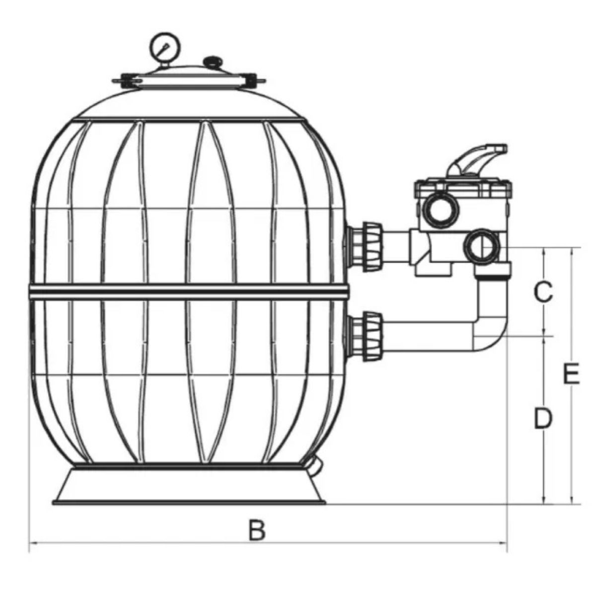 Aquarius zandfilter SIDE 14/16 m³/h, Ø 620 mm , incl. 6-wegklep, excl. 150 kg filterzand