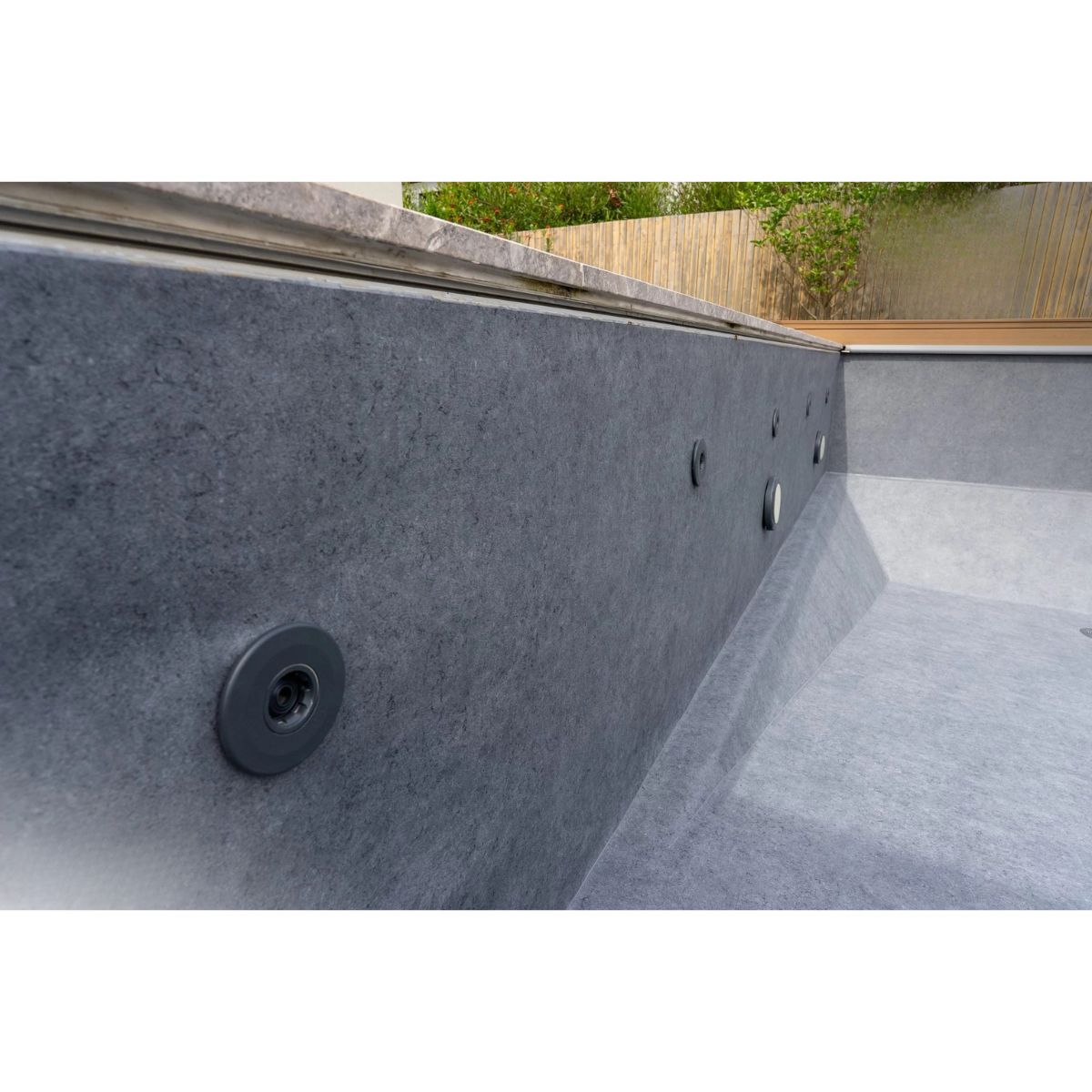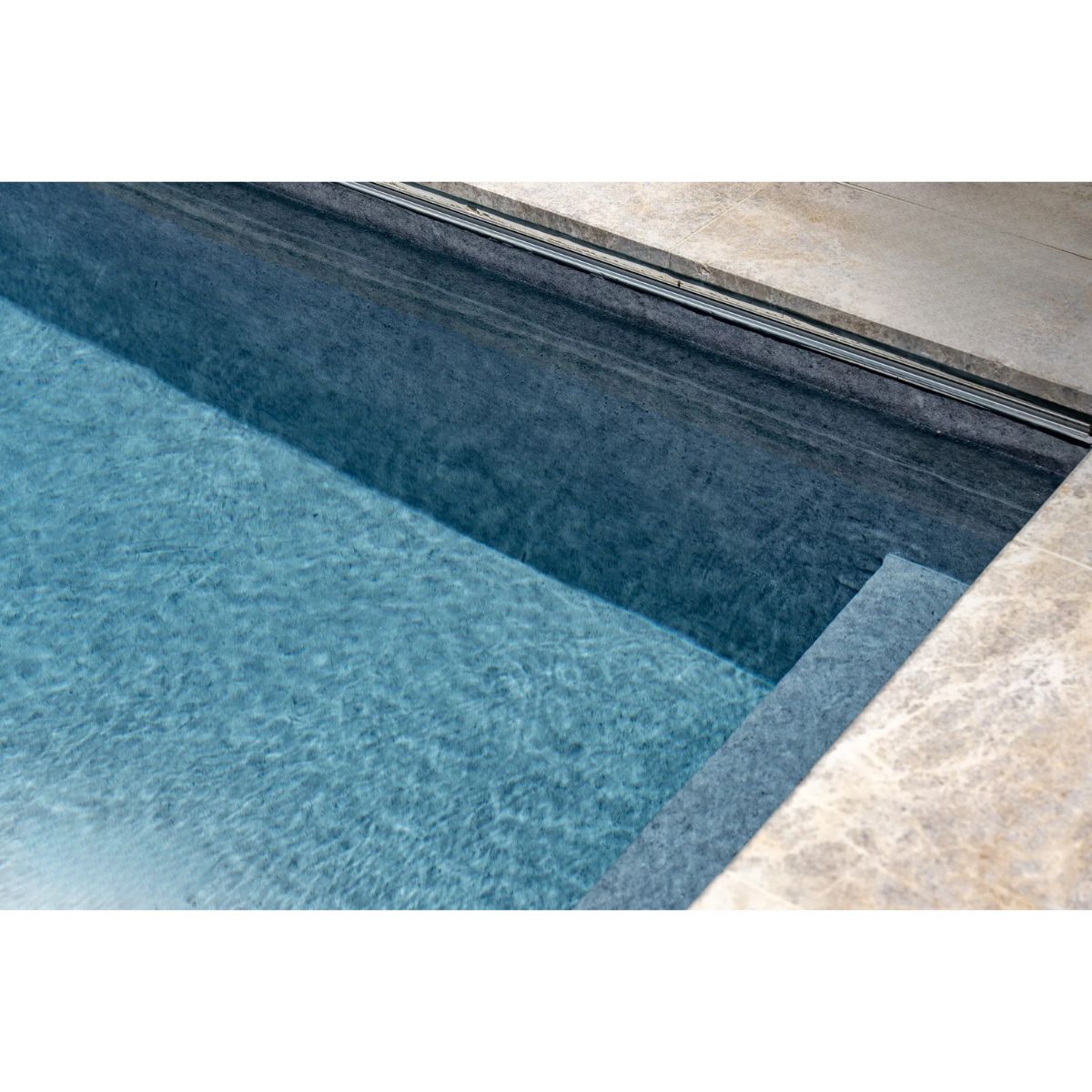 Dankzij de sterke polyester wapening en de duurzame beschermlaag blijft de folie langdurig mooi en vormvast. De speciale oppervlaktebescherming vermindert vervuiling en afzetting langs de waterlijn, waardoor Elbe SOLID STONE een betrouwbare en stijlvolle oplossing is voor zowel particuliere als professionele zwembaden.