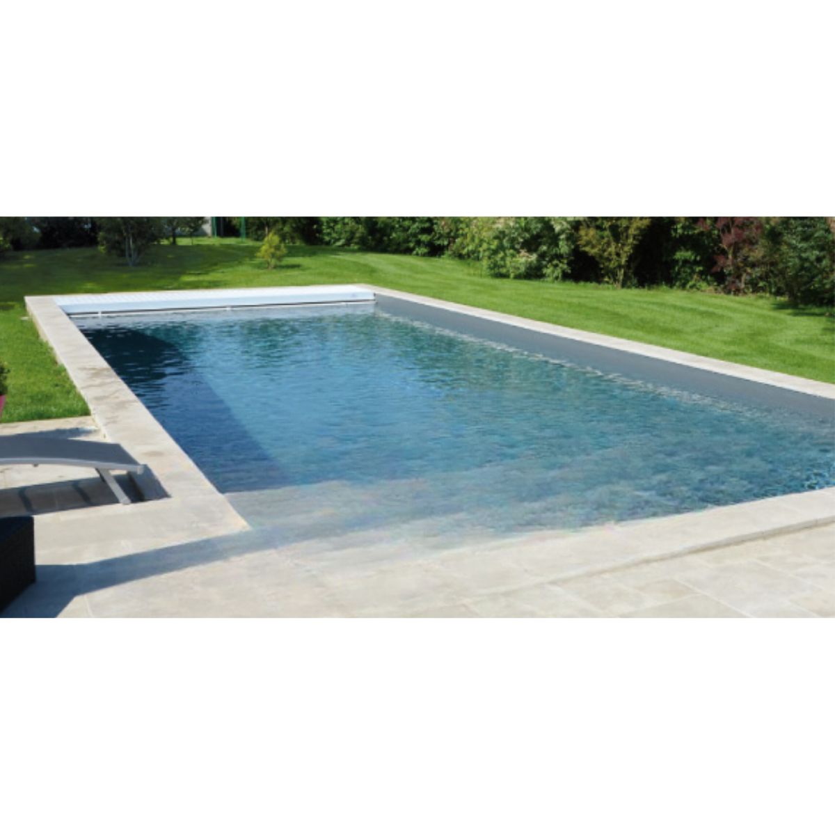 PVC-zwembadliners zijn verkrijgbaar in een breed palet aan kleuren en dessins — van tijdloos blauw tot eigentijdse grijstinten en natuurgetrouwe afwerkingen. De gekozen tint bepaalt de volledige waterbeleving en uitstraling van het zwembad: van fris en helder tot diep, elegant en ingetogen luxueus.