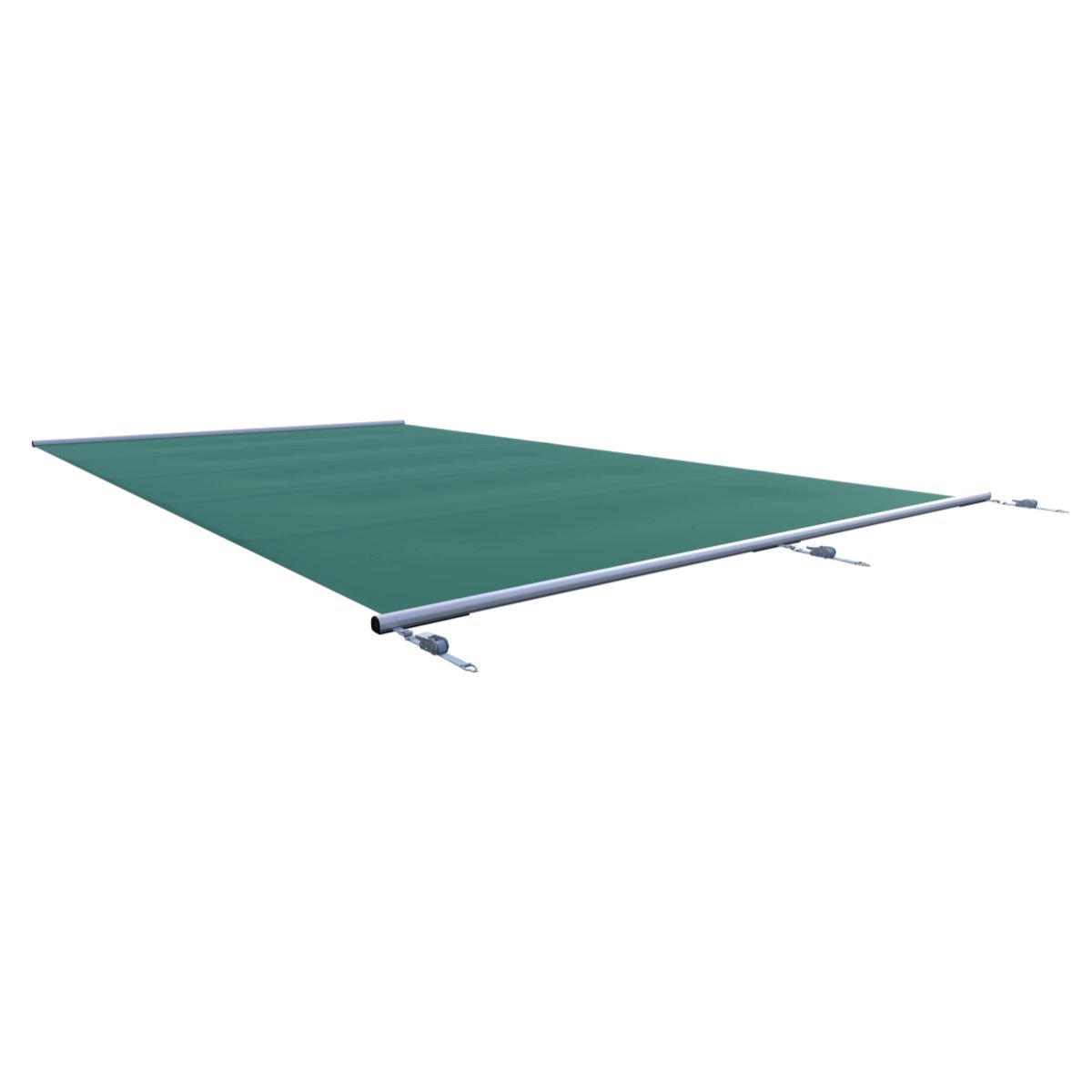 De veiligheidsafdekking bestaat uit sterk polyester doek, versterkt met een PVC-coating van 580 g/m², in combinatie met geanodiseerde aluminium steunprofielen (om de ca. 1,2 m). Dit garandeert een stabiele, betrouwbare en duurzame bescherming van het zwembad, het hele jaar door.