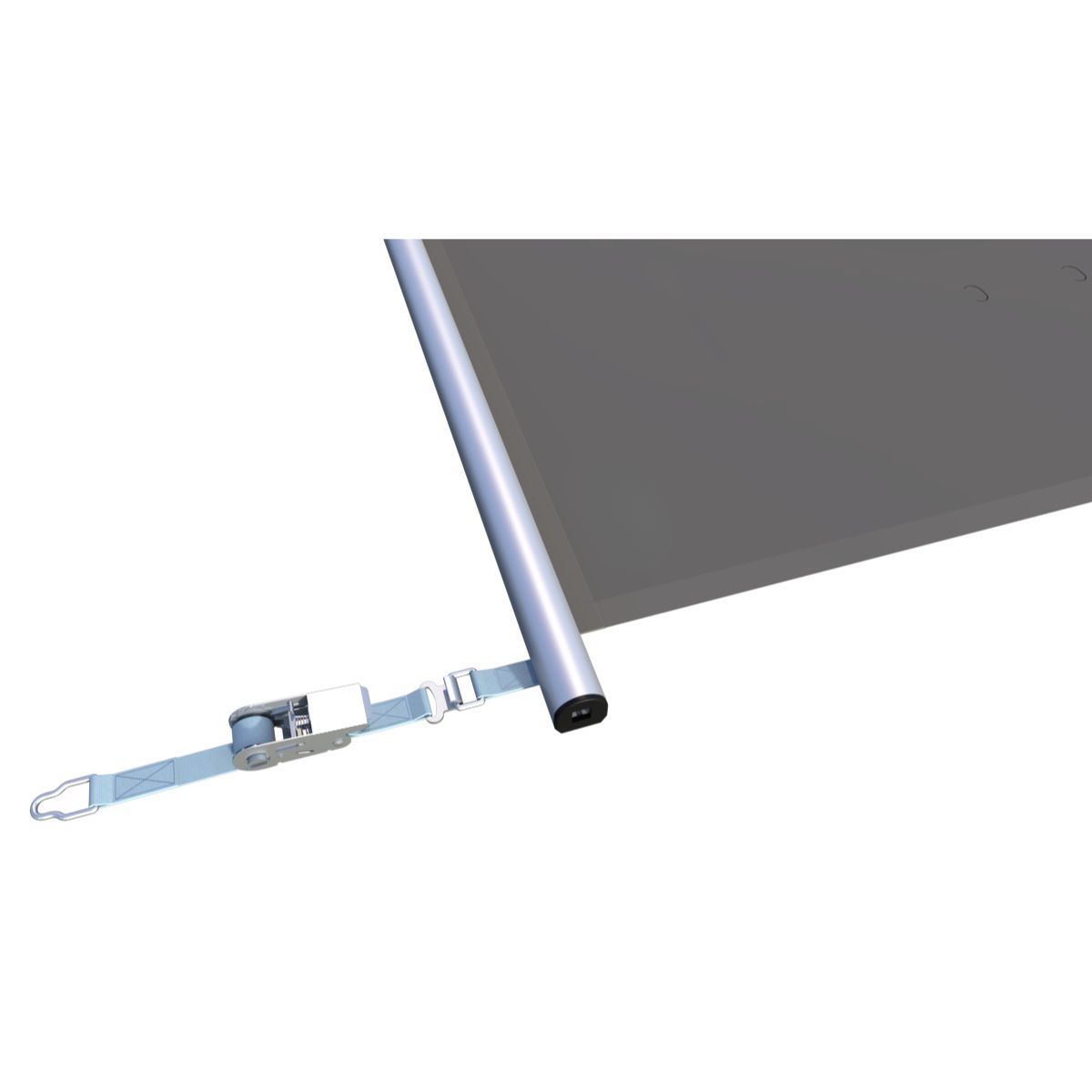 Het HRS VARIO SAFE-model kenmerkt zich door volledig in het doek weggewerkte verstevigingsbuizen, wat zorgt voor een strak en modern uiterlijk.