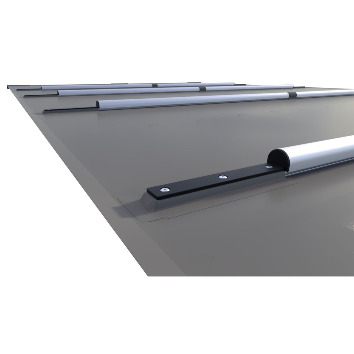 De veiligheidsafdekking bestaat uit sterk polyester doek, versterkt met een PVC-coating van 580 g/m², in combinatie met geanodiseerde aluminium steunprofielen (om de ca. 1,2 m). Dit garandeert een stabiele, betrouwbare en duurzame bescherming van het zwembad, het hele jaar door.