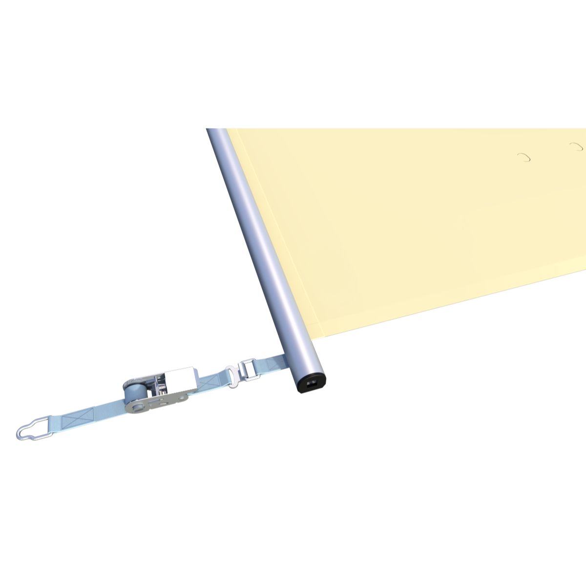 Het HRS VARIO SAFE-model kenmerkt zich door volledig in het doek weggewerkte verstevigingsbuizen, wat zorgt voor een strak en modern uiterlijk.