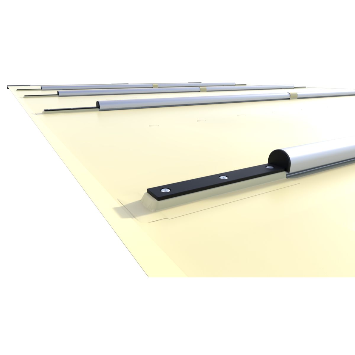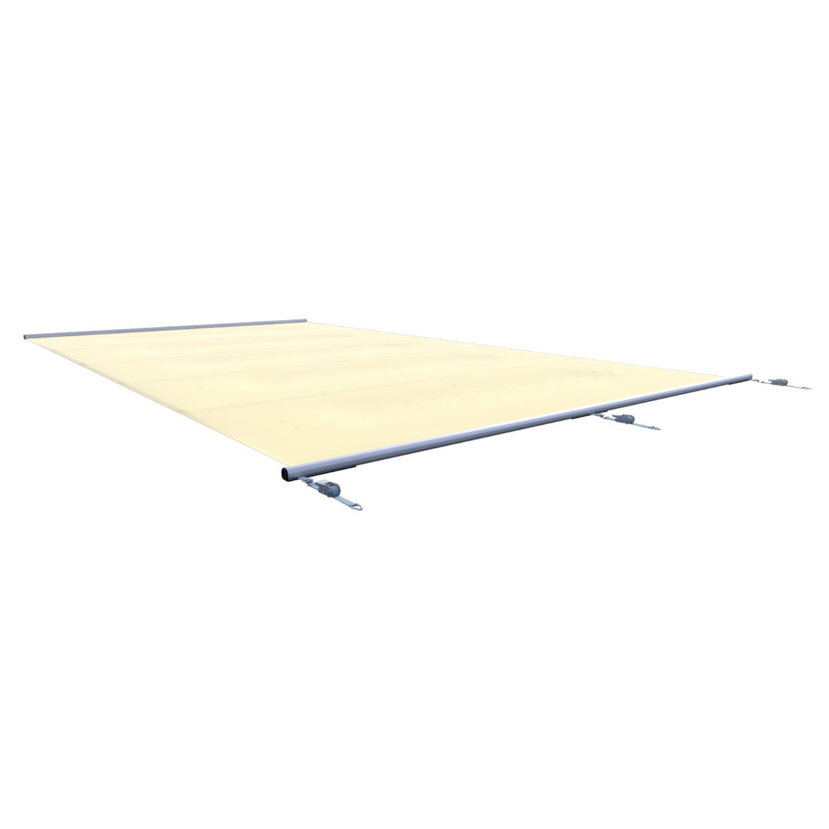 De veiligheidsafdekking bestaat uit sterk polyester doek, versterkt met een PVC-coating van 580 g/m², in combinatie met geanodiseerde aluminium steunprofielen (om de ca. 1,2 m). Dit garandeert een stabiele, betrouwbare en duurzame bescherming van het zwembad, het hele jaar door.