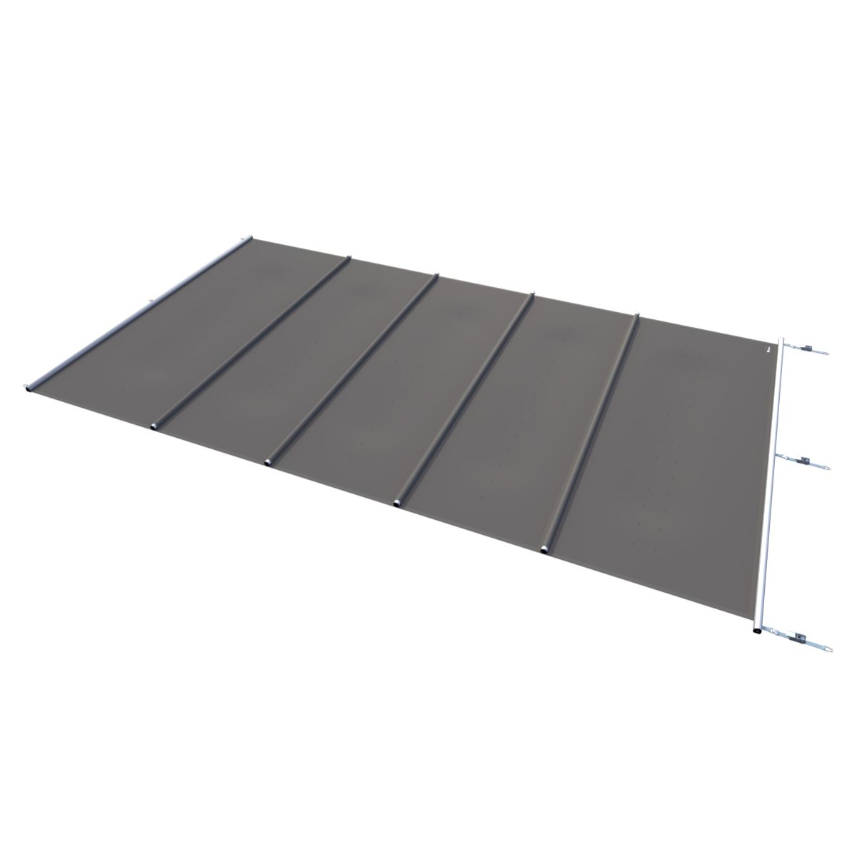 De veiligheidsafdekking bestaat uit sterk polyester doek, versterkt met een PVC-coating van 580 g/m², in combinatie met geanodiseerde aluminium steunprofielen (om de ca. 1,2 m). Dit garandeert een stabiele, betrouwbare en duurzame bescherming van het zwembad, het hele jaar door.